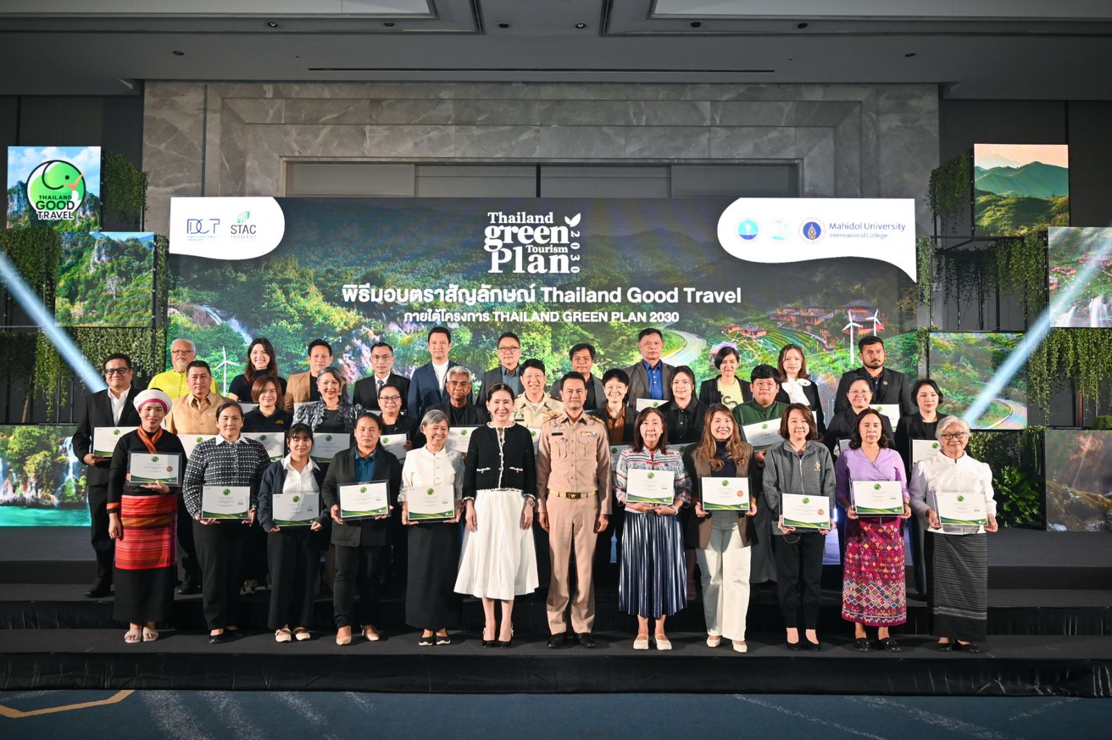 กรมการท่องเที่ยว กระทรวงการท่องเที่ยวและกีฬา จัดงาน พิธีมอบตราสัญลักษณ์มาตรฐานการท่องเที่ยวไทยอย่างยั่งยืน Thailand Good Travel ภายใต้โครงการ THAILAND GREEN PLAN 2030 ด้วยแนวคิด Champions of Change “เปิดตัวต้นแบบการเปลี่ยนผ่านสู่ความยั่งยืน” เพื่อประกาศความสำเร็จและยกย่องแหล่งท่องเที่ยวและผู้ประกอบการที่ผ่านกระบวนการคัดเลือกตามมาตรฐานด้านความยั่งยืน พร้อมประชาสัมพันธ์ศักยภาพของผู้ประกอบการและแหล่งท่องเที่ยวไทยสู่กลุ่มนักท่องเที่ยวเป้าหมายทั้งในประเทศและระดับนานาชาติ โดยได้รับเกียรติจาก นางสาวนัทรียา ทวีวงศ์ ปลัดกระทรวงการท่องเที่ยวและกีฬา เป็นประธานในพิธีเปิดงาน