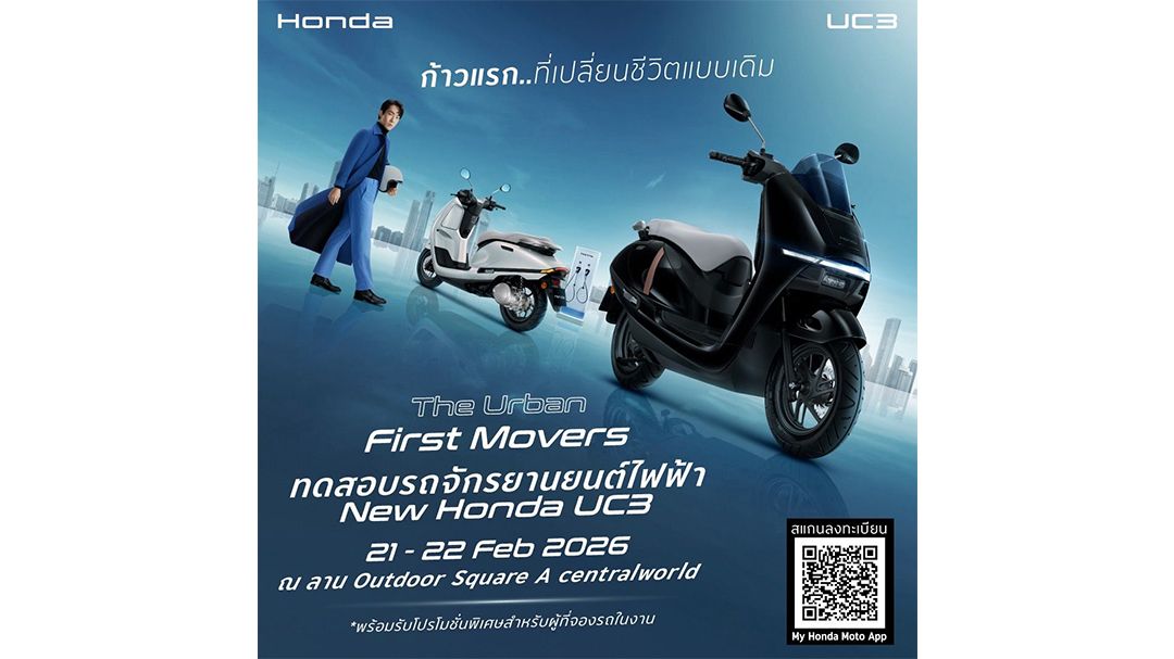 ไทยฮอนด้า จัดกิจกรรม Honda UC3 “Riding Moments” ที่ออกแบบมาเพื่อเปลี่ยนนิยามการเดินทางแบบเดิม ๆ มุ่งหน้าสู่การเป็น The Urban First Movers ไปด้วยกัน โดยขนทัพเปิดให้ร่วมทดสอบสมรรถนะฟรี! ประเดิมที่แรก ณ ศูนย์การค้าเซนทรัลเวิลด์ ลาน Outdoor Square A ระหว่างวันที่ 21 – 22 กุมภาพันธ์ 2569 เวลา 11:00 – 18:00 น. สนใจสามารถลงทะเบียนทดลองขับขี่ล่วงหน้าได้ที่ https://forms.office.com/r/cRpcqj7XDx ก่อนจะเดินทางออนทัวร์ทั่วประเทศ
