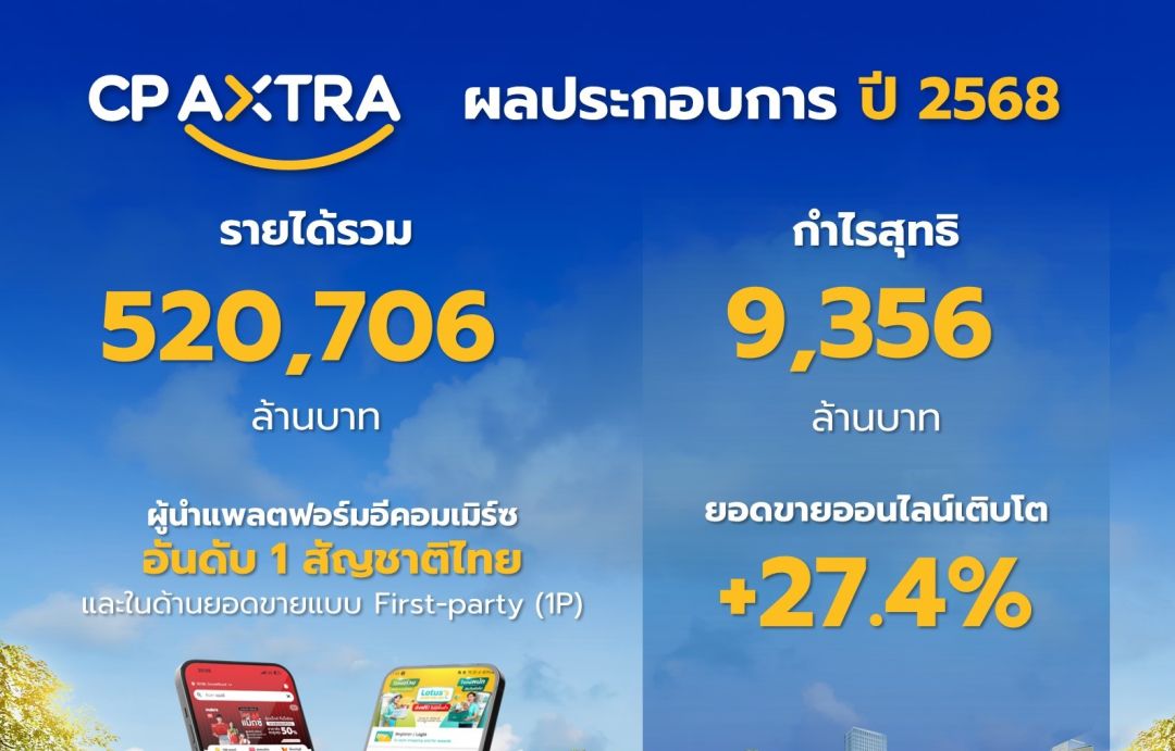 นายธานินทร์ บูรณมานิต ประธานคณะผู้บริหาร กลุ่มบริษัท ซีพี แอ็กซ์ตร้า จำกัด (มหาชน) กล่าวว่า บริษัทฯบริษัท ซีพี แอ็กซ์ตร้า จำกัด (มหาชน) (บริษัทฯ หรือ CPAXT) ผู้ดำเนินธุรกิจค้าส่งค้าปลีก แม็คโคร-โลตัส เผยผลประกอบการปี 2568 ด้วยรายได้รวม 520,706 ล้านบาท และมีกำไรสุทธิ 9,356 ล้านบาท โดยได้รับแรงหนุนจาก ยอดขายกลุ่มสินค้าอาหารสด ซึ่งเป็นจุดแข็งของบริษัทฯ ที่ขยายตัวอย่างต่อเนื่อง ควบคู่กับการเติบโตของสินค้าภายใต้แบรนด์ของบริษัทฯ (Private Label) ซึ่งช่วยสร้างความแตกต่างและหนุนภาพรวมรายได้ ให้แข็งแกร่งยิ่งขึ้น
