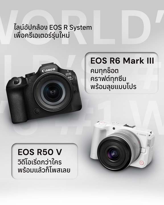 ในปี 2568 แคนนอนได้ขยายระบบ EOS R System ให้ครอบคลุมการใช้งานมากยิ่งขึ้น ด้วยการเปิดตัวกล้อง มิเรอร์เลส APS-C รุ่น EOS R50 V (พฤษภาคม 2568) ซึ่งเป็นรุ่นแรกในซีรีส์ EOS V ใหม่ที่มาพร้อมฟังก์ชันการถ่ายวิดีโออย่างสร้างสรรค์ ตลอดจนกล้องมิเรอร์เลสฟูลเฟรม EOS R6 Mark III (พฤศจิกายน 2568) ที่รวบรวมสมรรถนะการถ่ายภาพอันยอดเยี่ยมไว้ในเครื่องเดียว เพื่อตอบสนองความต้องการที่หลากหลายของผู้ใช้งานสมัครเล่นที่ต้องการอัปเกรดผลงาน