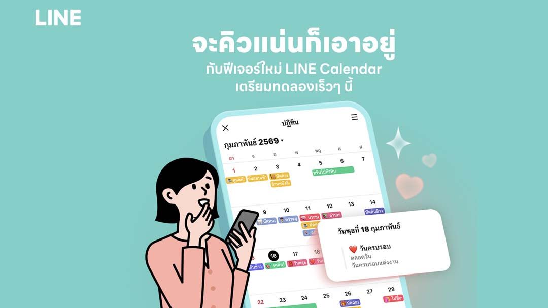 หนึ่งในพฤติกรรมที่ผู้ใช้จำนวนมากคุ้นเคย คือ การนัดหมายกันยาวในแชท แต่สุดท้ายลืมบันทึกลงปฏิทิน หรือมีตารางกระจัดกระจายอยู่หลายแอป LINE จึงพัฒนาฟีเจอร์ ‘ปฏิทิน’ บน LINE เพื่อให้ทุกการนัดหมาย “ครบจบในที่เดียว” ได้ ไม่ว่าจะเป็นการนัดเพื่อนหรือเรื่องสำคัญ สามารถสร้างได้ง่าย ๆ บน LINE โดยไม่ต้องสลับไปใช้งานแพลตฟอร์มอื่น