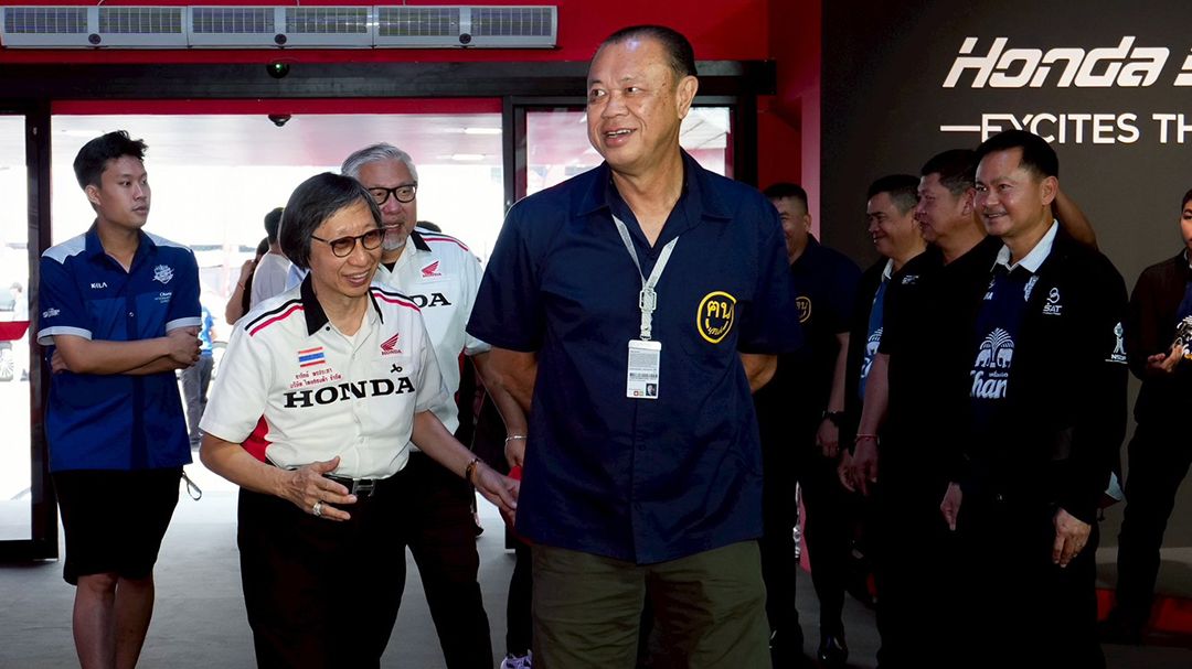 ดร.อารักษ์ พรประภา ประธานบริษัท ไทยฮอนด้า จำกัด ร่วมถ่ายภาพกับ คุณเนวิน ชิดชอบ ประธาน บริษัท บุรีรัมย์ ยูไนเต็ด อินเตอร์เนชั่นแนล เซอร์กิต จำกัด พร้อมคณะปฏิบัติงานจิตอาสาทั้งภาครัฐ และ ตัวแทนพี่น้องประชาชนจิตอาสาชาวบุรีรัมย์ ร่วมกันรับมอบหมวกกว่า 1,200 ใบ บริเวณด้านหน้า Honda Exhibition Hall เพื่อสนับสนุนการปฏิบัติงานอำนวยความสะดวก ดูแลความเรียบร้อย และให้การต้อนรับแฟนมอเตอร์สปอร์ต จากทั้งในและต่างประเทศ ในการจัดงานการแข่งขันทางเรียบชิงแชมป์โลก รายการ "พีที กรังด์ปรีซ์ ออฟ ไทยแลนด์ 2026" ณ สนามช้าง อินเตอร์เนชั่นแนล เซอร์กิต จ.บุรีรัมย์ วันที่ 27 กุมภาพันธ์ – 1 มีนาคมนี้ ที่ประเทศไทยเป็นเจ้าภาพเปิดฤดูกาลสนามแรกที่จังหวัดบุรีรัมย์