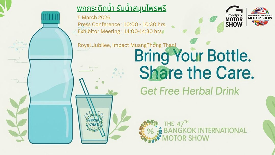 บริษัท กรังด์ปรีซ์ อินเตอร์เนชั่นแนล จำกัด (มหาชน) ในฐานะผู้นำการจัดงาน “บางกอก อินเตอร์เนชั่นแนล มอเตอร์โชว์ ครั้งที่ 47” ประกาศเดินหน้าพันธกิจด้านสิ่งแวดล้อมอย่างต่อเนื่อง เป็นปีที่ 2 กับโครงการ “พกกระติกน้ำ รับน้ำสมุนไพรฟรี” หลังได้รับผลตอบรับอย่างดีเยี่ยมในปีที่ผ่านมา เพื่อรณรงค์ลดขยะพลาสติกและสร้างวัฒนธรรมการบริโภคที่ยั่งยืน ภายใต้กรอบแนวคิด ESG (Environmental, Social, and Governance) ในงานแถลงข่าว และประชุมผู้เข้าร่วมออกงาน (Exhibitor Meeting) ยังคงมุ่งเน้นสร้างการมีส่วนร่วมในการรณรงค์ลดขยะ โดยส่งเสริมให้สื่อมวลชน ผู้เข้าร่วมออกงาน คณะทำงาน พกพากระติกน้ำหรือภาชนะส่วนตัว เพื่อลดการใช้บรรจุภัณฑ์แบบใช้ครั้งเดียวทิ้ง (Single-use Plastic) มาเติมเครื่องดื่มน้ำสมุนไพรเพื่อสุขภาพฟรี ณ จุดบริการบริเวณหน้าห้อง แถลงข่าว ในวันที่ 5 มีนาคม 2569 ณ ห้องรอยัล จูบิลี่ อิมแพ็ค เมืองทองธานี