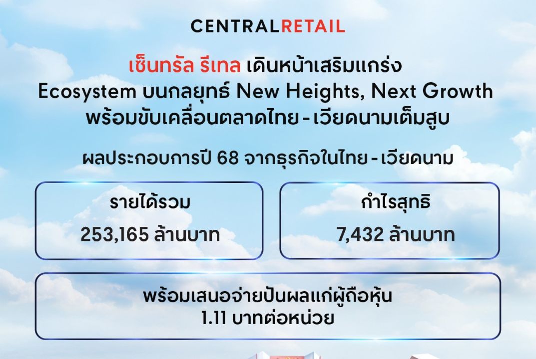 โดยไฮไลท์สำคัญในปี 2568 คือ การปรับพอร์ตโฟลิโอเชิงกลยุทธ์ของเซ็นทรัล รีเทล โดยมุ่งเน้นการขยายธุรกิจในตลาดหลักที่มีศักยภาพสูง ได้แก่ ประเทศไทย เวียดนาม และเอเชียตะวันออกเฉียงใต้ เพื่อสร้างการเติบโตระยะยาวและต่อยอดศักยภาพระหว่างธุรกิจในเครือ นอกจากนี้ยังมีไฮไลท์ความสำเร็จของธุรกิจตลอดปี 2568 ดังนี้
