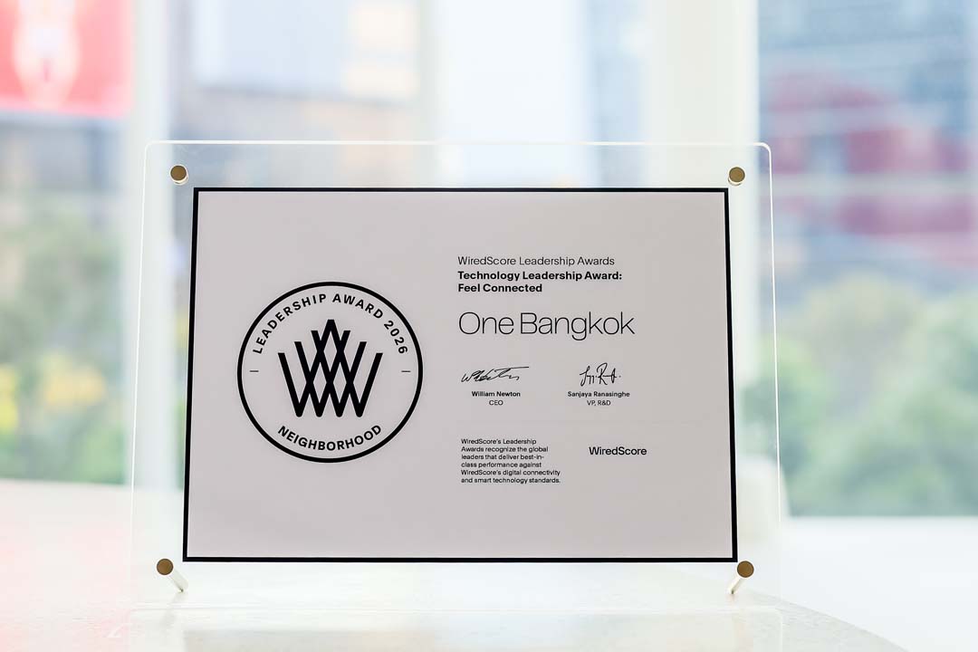 วัน แบงค็อก คว้ารางวัล Technology Leadership Award (Neighbourhood) สาขา “Feel Connected” จากเวที WiredScore Leadership Awards 2026 นับเป็นโครงการพัฒนาในระดับ Neighbourhood แห่งแรกในภูมิภาคเอเชียตะวันออกเฉียงใต้ได้รับรางวัลนี้