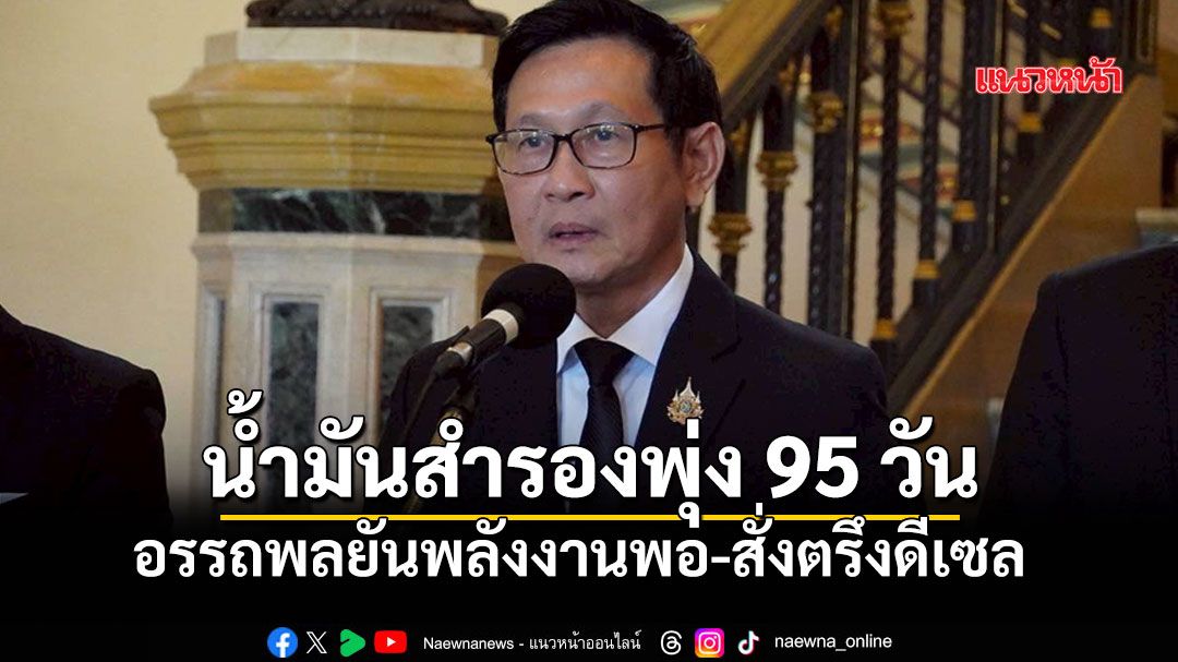 “รมว.อรรถพล” ยืนยันปริมาณน้ำมันสำรองหาเพิ่มได้เป็น 95 วันแล้ว และยังคงจัดหาอย่างต่อเนื่อง พร้อมใช้กลไกกองทุนฯ ตรึงดีเซล วอนประชาชนช่วยกันประหยัดพลังงาน