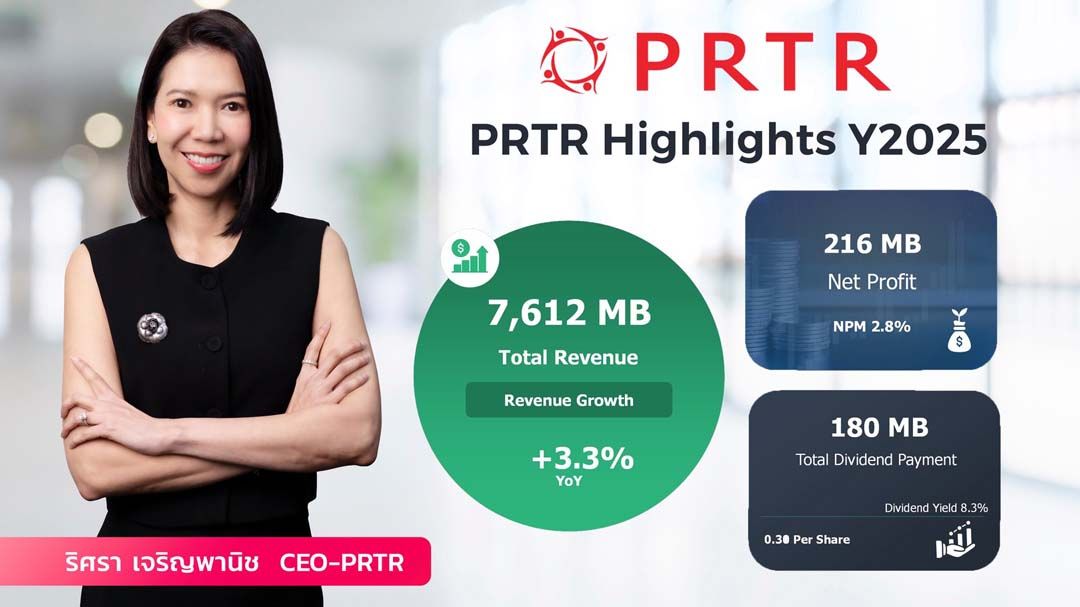 PRTRโตต่อเนื่อง รายได้ปี68แตะ 7,600 ล้านบาท เดินหน้ากลยุทธ์ 3 ปีสู่รายได้ 1 หมื่นล้านบาท