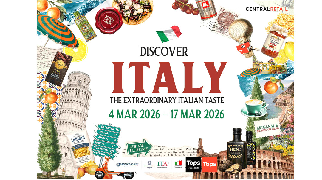 จัดงาน “Discover Italy: The Extraordinary Italian Taste” ตั้งแต่วันถึง 17 มีนาคม 2569 ที่ท็อปส์ และท็อปส์ ฟู้ด ฮอลล์ สาขาที่ร่วมรายการ เทศกาลที่รวบรวมวัตถุดิบต้นตำรับคุณภาพจากหลากหลายแคว้นทั่วอิตาลีกว่า 1,364 รายการ ครบครันทั้งวัตถุดิบพร้อมปรุง ของหวาน และไอเท็ม Made in Italy ที่ผ่านการคัดสรรรสชาติแท้ หายาก และโดดเด่นในแบบอิตาเลียนแท้ โดยมีไฮไลต์สินค้าพรีเมียมที่ไม่ควรพลาด อาทิ Dalla Costa Tricolor Smileyworld Pasta With Tomato And Spinach พาสต้ารูปหน้ายิ้มสีสันจากธรรมชาติ 100% Guglielmi Puglia IGP Extra Virgin Olive Oil น้ำมันมะกอกเอ็กซ์ตราเวอร์จิ้นจากแคว้นปูเลีย Zanetti Mascarpone Italiano ชีสเนื้อนุ่มสำหรับเมนูต้นตำรับ Agnesi Spaghetti เส้นสปาเก็ตตี้จากแป้งดูรัมวีทคุณภาพสูง และเมนูขนมจาก THE BAKER