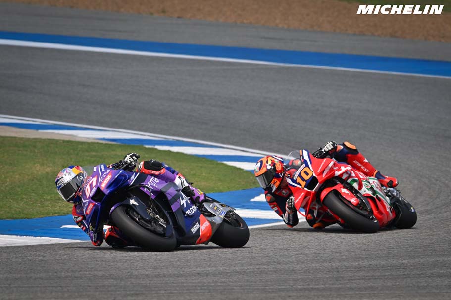 มร. ปิเอโร ทารามัสโซ่ (Piero Taramasso) ผู้จัดการฝ่ายมอเตอร์สปอร์ต กลุ่มผลิตภัณฑ์ 2 ล้อ ของมิชลิน เปิดเผยว่า “บุรีรัมย์เป็นสนามทดสอบยางที่สำคัญเสมอ เนื่องจากอุณหภูมิที่สูงมากและแรงเร่งที่ต่อเนื่อง ด้วยอุณหภูมิพื้นผิวสนามที่สูงถึง 58 องศาเซลเซียส การจัดการความร้อนจึงเป็นความท้าทายหลักของสุดสัปดาห์นี้ โครงสร้างยางหลังที่เสริมความแข็งแรงนั้นทำงานได้ตามคาด ให้ความเสถียร ความสม่ำเสมอ และการควบคุมอุณหภูมิได้ตลอดระยะทางการแข่งขัน ผลงานที่นักแข่งทำได้ตั้งแต่วันศุกร์แสดงให้เห็นว่าโซลูชันของเรามอบทั้งแรงยึดเกาะ ความนิ่ง และอิสระในการเลือกใช้งานอย่างแท้จริงสำหรับทุก ๆ ทีม”
