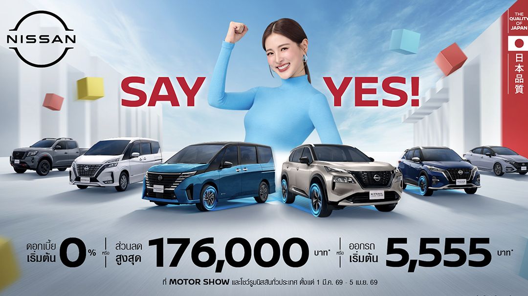 โดยภายในงาน นิสสันยังได้จัดแคมเปญโปรโมชั่นสุดพิเศษ SAY YES! กับข้อเสนอสุดคุ้ม ทั้งดอกเบี้ยต่ำ ไปจนถึงผ่อนสบายสูงสุด 84 เดือน และพิเศษสำหรับเซเรน่า อี-พาวเวอร์ รับส่วนลดพิเศษสูงสุด 100,000 บาท
