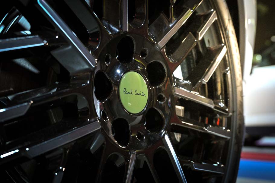 มินิ คูเปอร์ Paul Smith Edition โดดเด่นด้วยล้ออัลลอยขนาด 18 นิ้ว ลาย Night Flash Spoke สีดำ ตัดกับสี Dark Steel โลโก้มินิที่ด้านหน้าและด้านหลังมาในสีใหม่ Black Blue เข้ากับโทนสีของพอล สมิธ และมินิ ส่วนมือจับประตูหลังสีดำด้านท้ายรถก็ตกแต่งด้วยลายเซ็นของพอล สมิธ สะท้อนถึงพลังแห่งการสร้างสรรค์ที่อยู่เบื้องหลังงานออกแบบของรถคันนี้