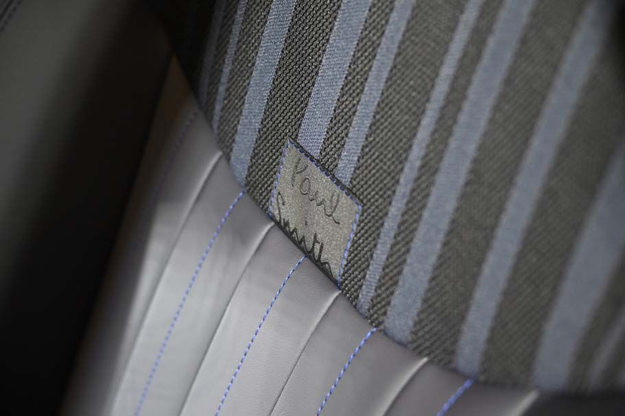 ภายในห้องโดยสารตกแต่งอย่างทันสมัย ด้วยพื้นผิวถักสีดำบนแผงคอนโซลและแผงประตู โดยพื้นผิวคอนโซลหน้ามีลวดลายแถบสีโทนดำตัดเทาที่ได้รับแรงบันดาลใจจากเนื้อผ้าในงานออกแบบของพอล สมิธ เบาะนั่งสปอร์ตสีน้ำเงิน Nightshade Blue ใช้วัสดุ Vescin และตกแต่งด้วยผ้าถักบริเวณไหล่และพนักพิงศีรษะ พวงมาลัยตกแต่งด้วยแถบผ้าที่มีแถบสีสดใส ซึ่งถอดแบบมาจากองค์ประกอบดีไซน์อันเป็นเอกลักษณ์ของพอล สมิธ