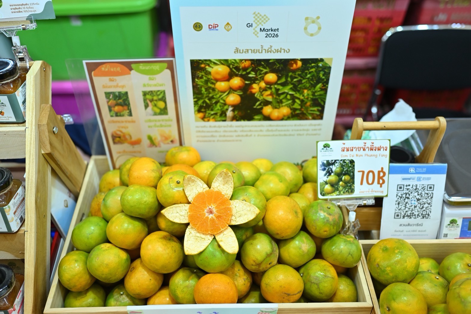 นางอรมน กล่าวว่า งาน GI Market 2026 จัดขึ้นระหว่างวันที่ 23 – 29 มีนาคม 2569 เวลา 10.00 - 22.00 น. ณ ลานโปรโมชั่น ชั้น G ศูนย์การค้าเซ็นทรัล ปิ่นเกล้า ชูแนวคิด “คัดสรรของดีถิ่นไทย มาตรฐาน GI สู่คุณค่าระดับสากล” เพื่อแสดงศักยภาพและตอกย้ำคุณภาพสินค้า GI ไทยในระดับพรีเมียม โดยการจัดงานในปีนี้ กรมฯ ได้รวบรวมสินค้า GI จากทุกภูมิภาคทั่วประเทศมาจำหน่ายภายในงานกว่า 70 ร้านค้า มีสินค้าที่น่าสนใจและเป็นไฮไลท์ของงาน ได้แก่ มะพร้าวน้ำหอมบ้านแพ้ว ของดีเมืองสมุทรสาครที่มีเนื้อมะพร้าวเหนียวนุ่ม รสชาติหอมหวานชื่นใจ และมีกลิ่นหอมคล้ายใบเตย หอยนางรมสุราษฎร์ธานี ส่งตรงจากอ่าวบ้านดอน ตัวใหญ่เนื้อแน่นขาวนวล รับประทานสดรสชาติดีและไม่มีกลิ่นคาว ข้าวเหนียวเขาวงกาฬสินธุ์ ข้าวเหนียวคุณภาพดี มีความอ่อนนุ่ม กลิ่นหอม และมีคุณค่าทางโภชนาการสูง กาแฟเทพเสด็จ กาแฟจากแหล่งปลูกในพื้นที่ป่าอนุรักษ์จังหวัดเชียงใหม่ ที่ปลูกร่วมกับพันธุ์พืชและดอกไม้ป่านานาชนิด ส่งผลให้กาแฟมีรสชาติกลมกล่อม และมีกลิ่นหอมเป็นเอกลักษณ์