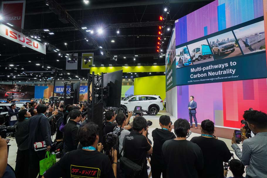 นอกจากนี้ ในฐานะผู้นำรถเพื่อการพาณิชย์ระดับโลก อีซูซุยังคงเดินหน้าสนับสนุนนโยบาย การมุ่งสู่ความเป็นกลางทางคาร์บอนอย่างเต็มรูปแบบ ภายใต้แนวคิด “โซลูชั่นส์อันหลากหลายสู่ความเป็นกลางทางคาร์บอน” โดยมุ่งมั่นพัฒนาผลิตภัณฑ์และบริการที่ตอบโจทย์ยานยนต์เพื่อการพาณิชย์โดยเฉพาะ ล่าสุดได้มีการต่อยอดความสำเร็จจากโครงการความร่วมมือพัฒนาไบโอดีเซล เจเนอเรชันใหม่ ร่วมกับ บริษัท มิตซูบิชิ คอร์ปอเรชั่น (ประเทศญี่ปุ่น) และ บริษัท ปตท. จำกัด (มหาชน) ซึ่งหลังจากเฟสแรกเมื่อปลายปี 2566 โดยร่วมกับ บริษัท มนต์ทรานสปอร์ต จำกัด ทดสอบใช้น้ำมัน HVO (Hydrogenated Vegetable Oil) หรือน้ำมันไบโอดีเซลจากน้ำมันพืชใช้แล้ว 30% ในรถบรรทุก Isuzu ELF ควบคู่กับการทดสอบรถบรรทุกไฟฟ้าอีซูซุ จนสามารถลดการปล่อยก๊าซ CO2 ได้สูงสุดถึง 30% ไปแล้วนั้น ขณะนี้การทดสอบในเฟสที่ 2 ได้ดำเนินการเสร็จสิ้นเรียบร้อยแล้ว โดยได้เพิ่มสัดส่วนการใช้พลังงานทดแทนด้วยการใช้น้ำมันปาล์มไบโอดีเซล B20 ควบคู่กับ HVO 30% ทดสอบวิ่งใช้งานจริงบนสภาพถนนทั้งในเมืองและต่างจังหวัดด้วยรถปิกอัพอีซูซุรุ่นล่าสุดมาตรฐานยูโร 5 ซึ่งผลลัพธ์ที่ได้ยอดเยี่ยม อัตราการสิ้นเปลืองน้ำมันไม่ต่างจากเดิม แต่สามารถลดการปล่อยก๊าซ CO2 ได้สูงสุดถึง 50% ถือเป็นอีกหนึ่งก้าวสำคัญของอีซูซุในการมีส่วนช่วยลด Carbon Footprint ให้โลกได้