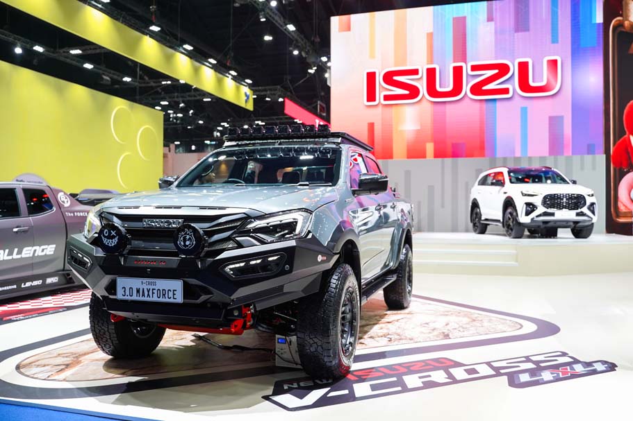 โดยอีซูซุได้นำรถมาจัดแสดงรวมทั้งสิ้น 15 คัน ทั้งรุ่นมาตรฐานยอดนิยมครบทุกไลน์อัพ จำนวน 10 คัน นำโดยรถปิกอัพอีซูซุ ดีแมคซ์ และรถยนต์นั่งอเนกประสงค์มิว-เอ็กซ์ รวมถึงอีกหนึ่งทางเลือกให้กับลูกค้าชาวไทยอย่างรถปิกอัพไฟฟ้า “อีซูซุ ดีแมคซ์ EV” ที่ได้นำมาจำหน่ายครั้งแรกภายในงาน และเพิ่มความสปอร์ตเร้าใจกับรถตกแต่งพิเศษหลากสไตล์จำนวน 5 คัน ที่ออกแบบมาเพื่อสร้างแรงบันดาลใจและสะกดทุกสายตา นำทัพโดย New! ISUZU V-CROSS 4x4 “THE ONE & ONLY” และ MU-X “THE NEXT PEAK” 4WD ครั้งแรกกับเครื่องยนต์ 2.2 Ddi MAXFORCE ในระบบขับเคลื่อนสี่ล้อ ที่เปิดตัวเมื่อปลายเดือนกุมภาพันธ์มาโชว์ภายในงาน พร้อมด้วยไฮไลต์สำคัญอย่าง รถปิกอัพอีซูซุ ดีแมคซ์ รถแข่งต้นแบบที่จะใช้ในรายการ “ISUZU CHALLENGE THAILAND 2026” และ ISUZU V-CROSS 4x4 เครื่องยนต์ 2.2 Ddi MAXFORCE ที่อีซูซุได้ร่วมมือกับ WILD ผู้ผลิตชิ้นส่วนชื่อดังของไทยในการออกแบบอุปกรณ์ตกแต่งพิเศษรอบคันโดยเฉพาะ และรถยนต์นั่งอเนกประสงค์ MU-X “THE NEXT PEAK” 2.2 Ddi MAXFORCE รุ่น RS สี Dolomite White Pearl มาตกแต่งเพิ่มความดุดันขั้นสุดในสไตล์ Top Secret SPL ครั้งแรกของโลกกับการเผยโฉมโปรเจกต์ "TOP Secret The First PPV” และ รถยนต์นั่งอเนกประสงค์ MU-X “THE NEXT PEAK” 2.2 Ddi MAXFORCE รุ่น Active สี Dolomite White Pearl ที่ร่วมมือกับ Bangkok Hot Rod Custom Show ผู้จัดงานประกวด Custom Car ที่ใหญ่ที่สุดในประเทศไทย มาพลิกโฉมสะกดทุกสายตาด้วยชุดแต่งพิเศษคอนเซปต์ "Premium Tough"