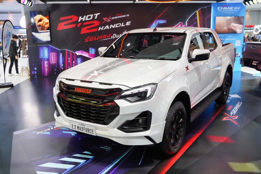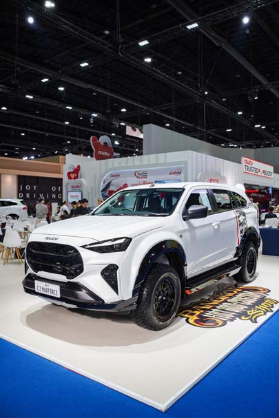 รถยนต์นั่งอเนกประสงค์สไตล์พรีเมียมสปอร์ตเรซซิ่งที่นำรถ MU-X “THE NEXT PEAK” 2.2 Ddi MAXFORCE รุ่น Active สี Dolomite White Pearl ที่ร่วมมือกับ Bangkok Hot Rod Custom Show ผู้จัดงานประกวด Custom Car ที่ใหญ่ที่สุดในประเทศไทย มาพลิกโฉมสะกดทุกสายตาด้วยชุดแต่งพิเศษคอนเซปต์ "Premium Tough" ที่ผสมผสานความสปอร์ตดุดันและความพรีเมียมไว้อย่างลงตัว พร้อมสร้างความเอ็กซ์คลูซีฟเหนือระดับด้วยการผลิตจำนวนจำกัดเพียง 100 คันเท่านั้น