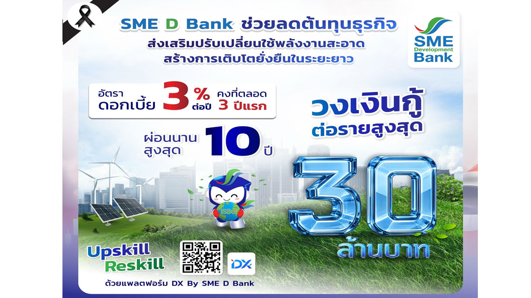 SME D Bank เปิดผลสำรวจดัชนีความเชื่อมั่นผู้ประกอบการเอสเอ็มอีทั่วประเทศ ประจำไตรมาส 1/2569 พบปรับลดลงอย่างรุนแรง เหลือระดับ 50.2 จากไตรมาส 4/68 ที่อยู่ระดับ 68.9 เหตุกังวลราคาน้ำมันและต้นทุนการผลิตที่เพิ่มสูงขึ้น กระทบคำสั่งซื้อและการดำเนินธุรกิจ ประกาศแผนช่วยหลือเต็มกำลัง สอดคล้องกับนโยบายรัฐบาล จัดสินเชื่อดอกเบี้ยต่ำ 3% ต่อปี วงเงินรวม 20,000 ล้านบาท ช่วยลดภาระต้นทุนธุรกิจ พร้อมส่งเสริมปรับเปลี่ยนใช้พลังงานสะอาด เสริมศักยภาพแข่งขัน และสร้างการเติบโตยั่งยืนในระยะยาว ขณะเดียวกัน ออกมาตรการลดการใช้พลังงานภายในองค์กร