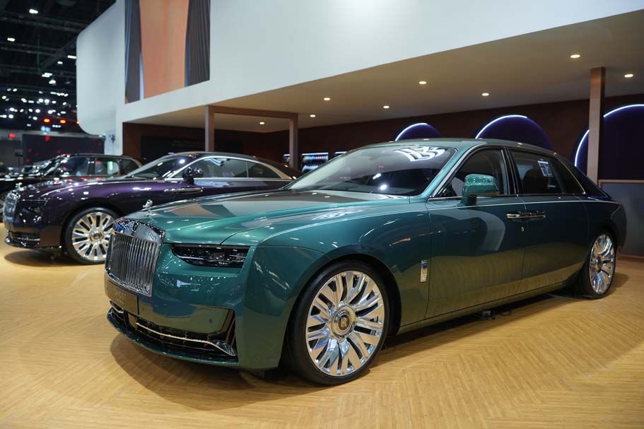 โรลส์-รอยซ์ มอเตอร์คาร์ส แบงคอก นำเสนอยนตรกรรมไฮไลท์ รุ่น โกสต์ ฐานล้อยาว (GHOST Extended) ที่สมบูรณ์แบบในทุกด้าน กับวิศวกรรมอันงดงามดุจงานศิลป์ ผ่านปรัชญาการออกแบบ Post Opulence ที่ดูเรียบง่าย หรูหรา แต่แฝงไปด้วยดีไซน์ที่ลงตัว ตัวถังสีเขียว (Imperial Jade) ตัดด้วยเส้นด้านข้าง (Coachline) สีขาว (Grace White) ที่ใช้การวาดด้วยมือ ซึ่งเป็นทักษะขั้นสูงอันเป็นเอกลักษณ์ นำเสนอรูปแบบใหม่ด้วยเส้นแนวตั้งที่โฉบเฉี่ยวมากยิ่งขึ้น มาพร้อมล้ออัลลอยขนาด 22 นิ้ว แบบ 9 Spoke Fully Polished และสัญลักษณ์นางฟ้า Spirit of Ecstacy ที่ไม่ได้ถูกล้อมกรอบบริเวณฐาน เพิ่มความโดดเด่นยิ่งขึ้น ดุจกำลังลอยอยู่กลางทะเลสาป