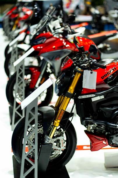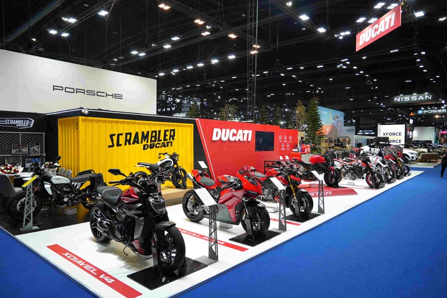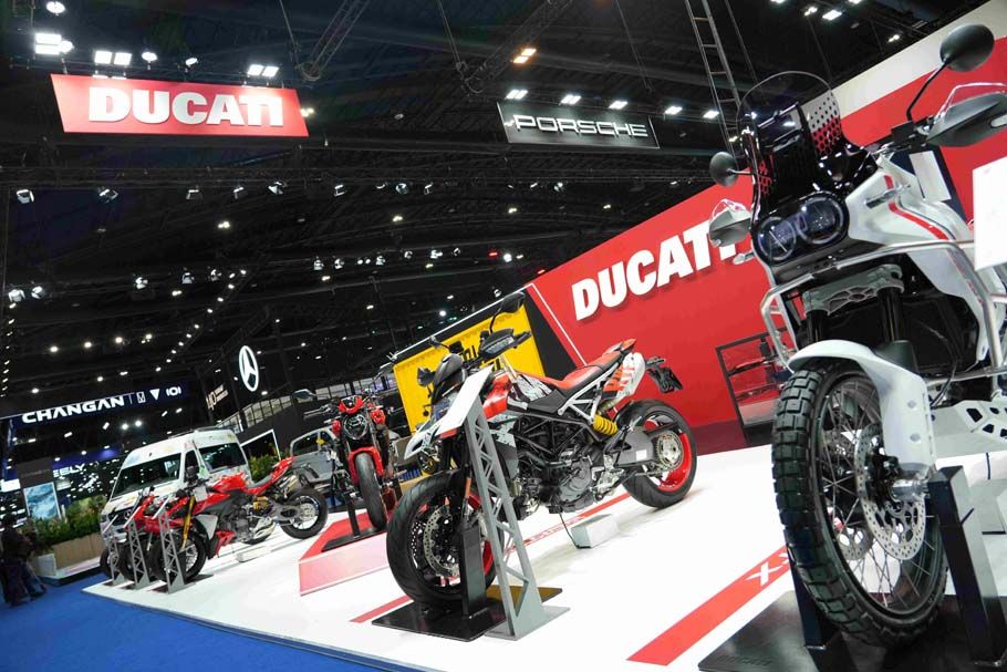ภายในงานครั้งนี้ ดูคาติ ประเทศไทย ได้สร้างความโดดเด่นด้วยการ จัดแสดงรถจักรยานยนต์ครบทุก Model Range เป็นครั้งแรกในประเทศไทย พร้อมอุปกรณ์ตกแต่ง (Accessories) อย่างครบครัน สะท้อนศักยภาพของแบรนด์ที่ครอบคลุมทั้งสาย Performance, Adventure และ Lifestyle อย่างแท้จริง