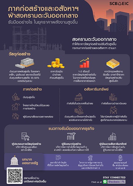 สงครามตะวันออกกลาง ทำให้ราคาพลังงานปรับตัวสูงขึ้น และส่งผลให้ต้นทุนอุตสาหกรรมวัสดุก่อสร้างสูงขึ้น โดยเฉพาะสินค้าที่มีโครงสร้างต้นทุนการผลิตที่ใช้พลังงานสูง เช่น เหล็ก, ปูนซีเมนต์ และกระเบื้อง (สัดส่วนต้นทุนพลังงานอยู่ที่ 35-50% ของต้นทุนรวม) นอกจากนี้ยังได้รับผลกระทบด้านราคาวัตถุดิบที่ต้องนำเข้าจากต่างประเทศ ที่เผชิญความผันผวนไปตามราคาสินค้าโภคภัณฑ์ในตลาดโลก รวมถึงค่าขนส่งและค่าเบี้ยประกันภัยที่ปรับตัวสูงขึ้นตามไปด้วยเช่นกัน