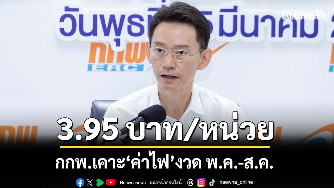 ‘กกพ.’เคาะแล้ว‘ค่าไฟ’งวด พ.ค.-ส.ค.ที่ 3.95 บาท/หน่วย