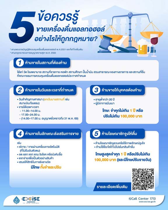 นอกจากนี้ ได้มอบหมายให้เร่งประชาสัมพันธ์สร้างความรับรู้และทำความเข้าใจกับผู้ประกอบการให้ปฏิบัติตามกฎหมายอย่างถูกต้อง รวมถึงหลักเกณฑ์เกี่ยวกับสถานที่จำหน่าย ช่วงเวลาห้ามขาย การห้ามส่งเสริมการขาย โดยเฉพาะการห้ามจำหน่ายให้แก่ผู้มีอายุต่ำกว่า 20 ปี และผู้ที่อยู่ ในอาการมึนเมา ซึ่งมีบทกำหนดโทษทั้งทางอาญา และอาจมีความรับผิดทางแพ่งต่อผู้จำหน่ายหากการจำหน่ายนั้น นำไปสู่ความเสียหายต่อชีวิต ร่างกาย หรือทรัพย์สินของผู้อื่น