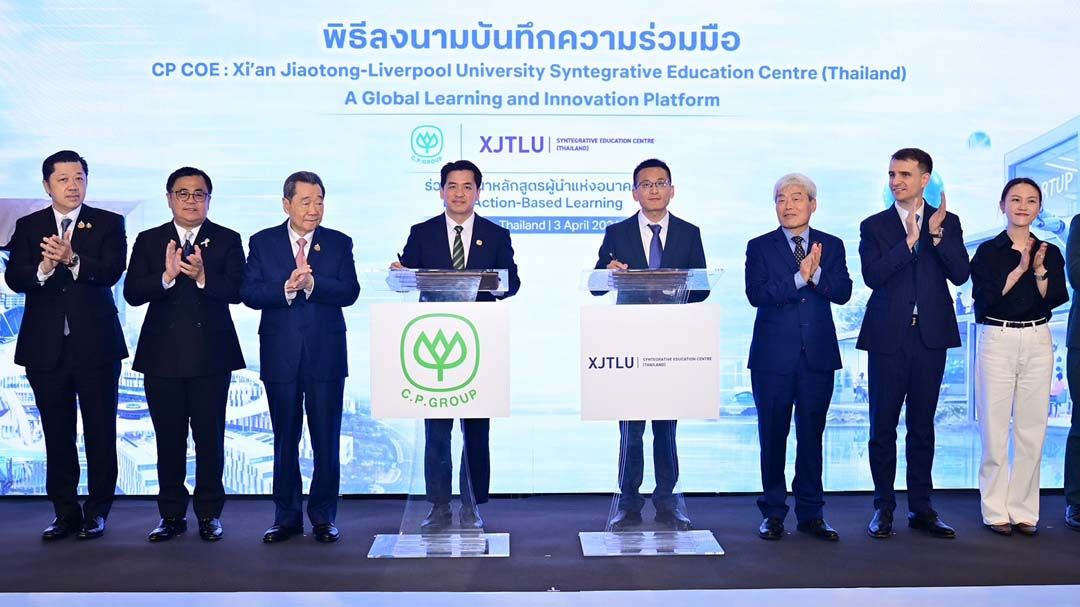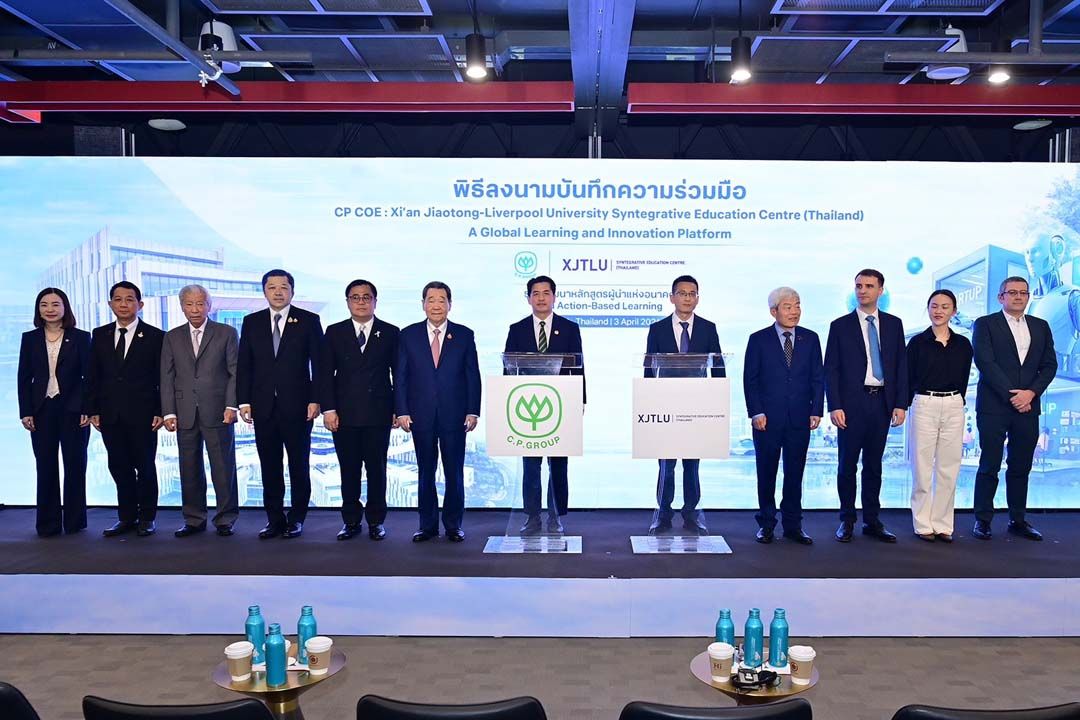 ทั้งนี้ ถือเป็นหนึ่งใน Ecosystem สำคัญของการขับเคลื่อนนวัตกรรมในภูมิภาค ถือเป็นก้าวสำคัญของการพัฒนา “ระบบการเรียนรู้แห่งอนาคต” ที่เชื่อมโยงภาคการศึกษาเข้ากับโลกธุรกิจจริง โดยต่อยอดจากวิสัยทัศน์ของ นายธนินท์ เจียรวนนท์ ประธานอาวุโส เครือเจริญโภคภัณฑ์ ที่ให้ความสำคัญกับ “การพัฒนาคน” ในฐานะรากฐานของความสามารถในการแข่งขันของประเทศ และ นายศุภชัย เจียรวนนท์ ผู้ริเริ่มและก่อตั้ง CP Center of Excellence (CP COE) เพื่อยกระดับเครือเจริญโภคภัณฑ์สู่การเป็น Tech-Driven Company และเชื่อมองค์ความรู้ เทคโนโลยี และธุรกิจเข้าด้วยกันในระดับสากล สอดคล้องกับแนวคิดของผู้นำการศึกษาระดับโลก Professor Youmin Xi อธิการบดีบริหาร แห่ง XJTLU ที่ชี้ว่าโลกกำลังก้าวสู่ยุคที่ AI และดิจิทัลกำลังเปลี่ยนโฉมการศึกษา การเรียนในยุคปัจจุบัน ควรเป็นรูปแบบการลงมือทำจริง จากโจทย์จริงของภาคธุรกิจและอุตสาหกรรม โดยได้จัดมีพิธีลงนามความร่วมมืออย่างใหญ่ขึ้นที่ห้องประชุม Auditorium อาคารทรู ทาวเวอร์ ถนนรัชดาภิเษก