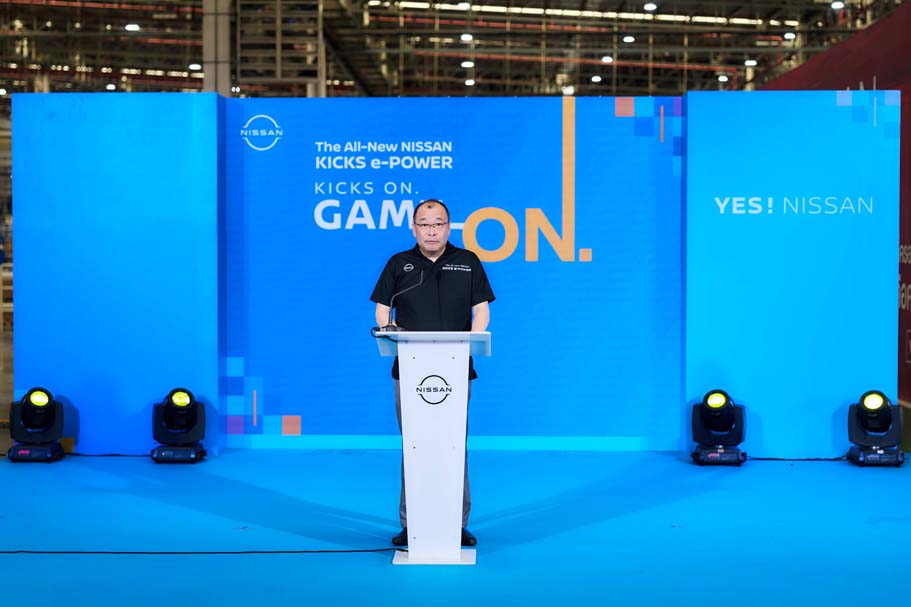 โชเฮย์ ยามาซากิ ประธานคณะกรรมการบริหารประจำภูมิภาค ญี่ปุ่น/อาเซียน และ AFL (Chairperson of the Management Committee for Japan/ASEAN &AFL) บริษัท นิสสัน มอเตอร์ จำกัด กล่าวว่า “นิสสันดำเนินธุรกิจในประเทศไทยมายาวนานกว่า 73 ปี และยังคงมุ่งมั่นพัฒนาผลิตภัณฑ์และยกระดับศักยภาพการผลิต เพื่อตอบสนองความต้องการของลูกค้าอย่างต่อเนื่อง วันนี้นับเป็นอีกหนึ่งเป้าหมายสำคัญกับการเริ่มสายการผลิต ‘นิสสัน คิกส์ อี-พาวเวอร์ ใหม่’ ซึ่งสะท้อนถึงศักยภาพ และความเชี่ยวชาญในการผลิตยานยนต์ของคนไทย พร้อมส่งมอบรถยนต์คุณภาพมาตรฐานญี่ปุ่นสู่ผู้ขับขี่อย่างมีประสิทธิภาพ”