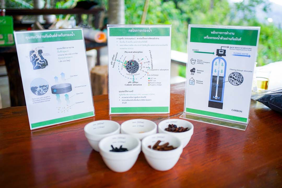 • โครงการการใช้ประโยชน์ถ่านกัมมันต์จากเปลือกกาแฟในระบบกรองน้ำ ภายใต้แนวคิดการสร้างเศรษฐกิจหมุนเวียน (Circular Economy) ช่วยลดของเหลือทิ้งจากกระบวนการผลิตกาแฟ พร้อมได้น้ำที่มีคุณภาพสม่ำเสมอสำหรับการแปรรูป และลดการใช้สารกรองในระบบ นอกจากนี้ ยังเป็นการเปลี่ยน “ของเหลือทิ้ง” ให้กลายเป็นทรัพยากรที่สร้างประโยชน์ด้านสุขอนามัยและคุณภาพชีวิตให้แก่ชุมชนอย่างเป็นรูปธรรม ขณะเดียวกันชาวชุมชนบ้านดอยช้าง อ.แม่สรวย จ.เชียงราย ได้มีน้ำสะอาดอุปโภคและบริโภค ลดภาระค่าใช้จ่ายในการจัดหาน้ำและสารกรอง และลดความเสี่ยงจากการปนเปื้อนในระยะยาว ส่งผลต่อคุณภาพชีวิตและความเป็นอยู่ที่ดี (Well-Being) อย่างยั่งยืน