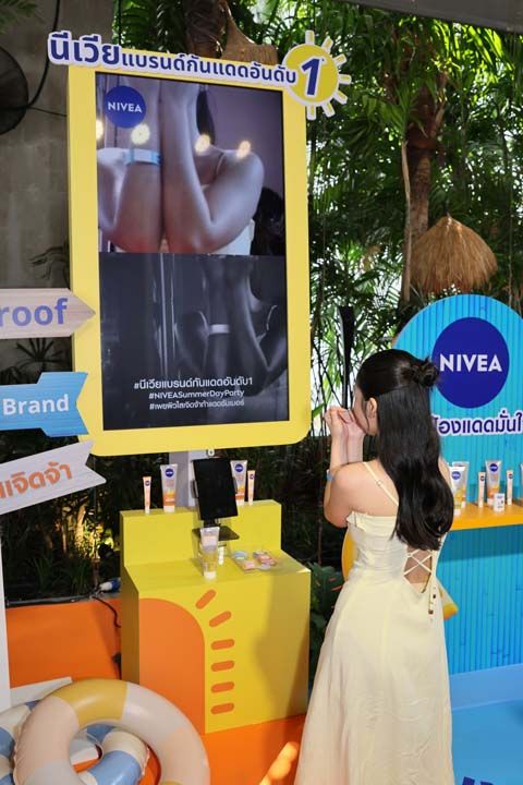 เพื่อสะท้อนแนวคิดดังกล่าว นีเวียได้จัดงาน “NIVEA Summer Party” ชวนเหล่าคนรักผิวมาร่วมสัมผัสประสบการณ์กันแดดรูปแบบใหม่ ผ่านกิจกรรมสุดสร้างสรรค์ในบรรยากาศซัมเมอร์ อาทิ โซนทดลองผลิตภัณฑ์พร้อมมุมถ่ายภาพธีมซัมเมอร์ และไฮไลท์สำคัญอย่างการทดสอบประสิทธิภาพกันแดดผ่าน UV Camera รวมถึงกิจกรรมเพ้นต์ผิวด้วยสีผสมกันแดด ที่ช่วยตอกย้ำประสิทธิภาพการปกป้องผิวจากรังสี UV ได้อย่างชัดเจน และสร้างความมั่นใจให้กับผู้บริโภคในทุกการใช้งาน