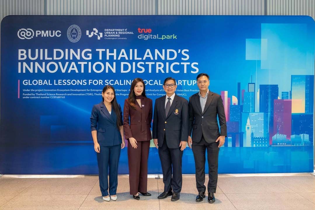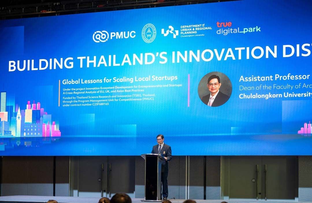 9 เมษายน 2569 จุฬาลงกรณ์มหาวิทยาลัย โดย คณะสถาปัตยกรรมศาสตร์ และศูนย์บริการวิชาการแห่งจุฬาลงกรณ์มหาวิทยาลัย ลงนามบันทึกข้อตกลงความร่วมมือ กับ ทรู ดิจิทัล พาร์ค ศูนย์กลางเทคและสตาร์ทอัพที่ใหญ่ที่สุดในเอเชียตะวันออกเฉียงใต้ประกาศผนึกพลังขับเคลื่อนโครงการ “การพัฒนาย่านนวัตกรรมสนับสนุนผู้ประกอบการสตาร์ทอัพ ผ่านการเรียนรู้โมเดลระดับโลก” ดึงศักยภาพด้านงานวิจัยโดยเฉพาะในระดับมหาวิทยาลัย เชื่อมโยงเครือข่ายผู้ประกอบการ นักลงทุนและองค์กรธุรกิจทั้งในและต่างประเทศภายใต้ระบบนิเวศสตาร์ทอัพที่สมบูรณ์แบบครบวงจร เสริมด้วยองค์ความรู้ระดับสากลจากพันธมิตรองค์กรชั้นนำใน 3 ประเทศ คือ เนเธอร์แลนด์ สหราชอาณาจักร และ สิงคโปร์ เปิดฉากทัศน์ใหม่ในการแลกเปลี่ยนประสบการณ์และความเชี่ยวชาญ การพัฒนาโครงการร่วม และการเชื่อมโยงตลาดและแหล่งทุนระดับภูมิภาคและระดับโลก มุ่งศึกษา 3 เทคโนโลยียุทธศาสตร์ ได้แก่ อาหารแห่งอนาคต (Future Food) สุขภาพ(Health Tech) และ สิ่งแวดล้อม (Green Innovation) ตั้งเป้าเปลี่ยนงานวิจัยเชิงลึกสู่การสร้างพื้นที่เศรษฐกิจนวัตกรรมที่จับต้องได้จริง
