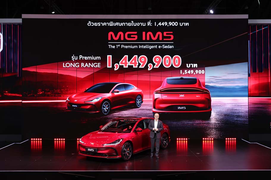 เอ็มจี เปิดตัว MG IM5 ซีดานไฟฟ้าพรีเมียม “The 1st Premium Intelligent e-Sedan” ภายใต้แนวคิด “I AM WHO I AM” ผสานดีไซน์หรู เทคโนโลยีล้ำ และสมรรถนะเร้าใจ วิ่งไกลกว่า 860 กม. พร้อมราคาพิเศษ 1.449 ล้านบาท และการรับประกัน EV ตลอดอายุการใช้งาน ภายในงานมอเตอร์โชว์ ครั้งที่ 47 พร้อมยกทัพรถรุ่นเด่น และโปรโมชันสุดคุ้มครบครัน