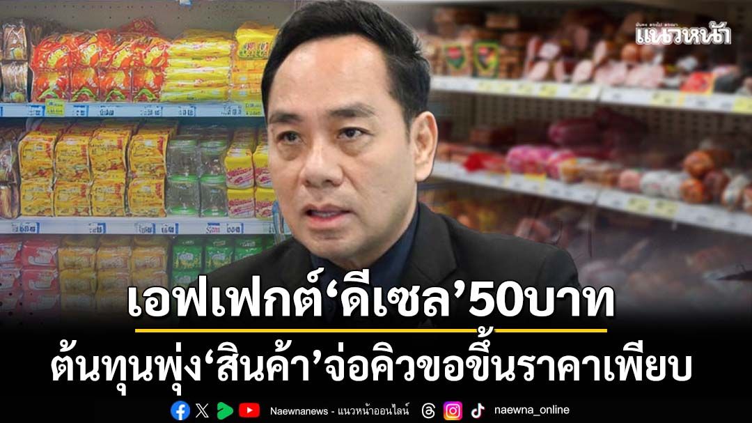 ‘กรมการค้าภายใน’วิเคราะห์‘ดีเซล’พุ่งลิตรละ 50 บาท กระทบต้นทุนสินค้า 0.7-44.4% อาหารสดต่ำสุด ปุ๋ยสูงสุด ยันจะกำกับดูแลการขึ้นราคาอย่างเต็มที่ ไม่ให้กระทบประชาชนมากจนเกินไป ล่าสุด‘น้ำมันปาล์ม สบู่ แชมพู’ขอปรับราคาแล้ว แต่ยังไม่อนุมัติ อัดโครงการลดภาระค่าครองชีพเต็มสูบ ทั้งไทยช่วยไทย ธงฟ้า ธงเขียว