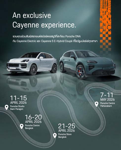 เอเอเอสฯ ขอเชิญทุกท่านร่วมเป็นส่วนหนึ่งของปรากฏการณ์ครั้งสำคัญนี้ และสัมผัสนิยามใหม่ของ Performance Electric SUV ได้ด้วยตัวคุณเอง ณ โชว์รูมปอร์เช่ทั้ง 4 สาขา
