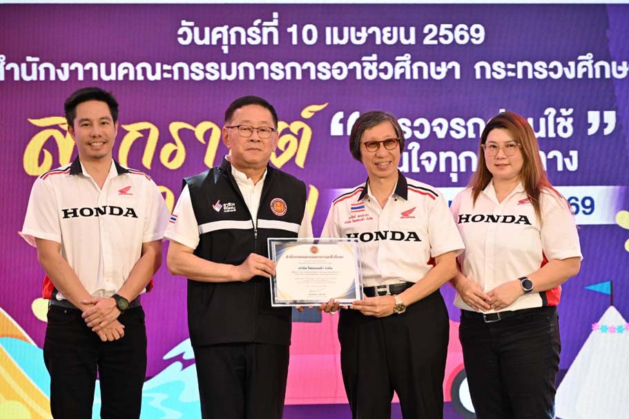 ไทยฮอนด้า ร่วมสนับสนุนโครงการ “อาชีวะ-ขนส่ง อาสาช่วยประชาชน” ช่วงเทศกาลสงกรานต์ 2569 ภายใต้แนวคิด “สงกรานต์ปลอดภัย ตรวจรถก่อนใช้ อุ่นใจทุกเส้นทาง” ในโอกาสนี้ ดร.อารักษ์ พรประภา ประธาน บริษัท ไทยฮอนด้า จำกัด ได้ร่วมมอบน้ำมันเครื่อง Honda Protech Gold สำหรับรถจักรยานยนต์ จำนวน 3,600 ขวด มูลค่ากว่า 360,000 บาท พร้อมผนึกความร่วมมือกับพันธมิตรภาคเอกชน สนับสนุนการดำเนินโครงการผ่านจุดบริการ Fix it Center กว่า 150 จุดทั่วประเทศ ตรวจเช็กและบำรุงรักษารถให้แก่ประชาชนก่อนออกเดินทางกลับภูมิลำเนาโดยไม่เสียค่าใช้จ่าย