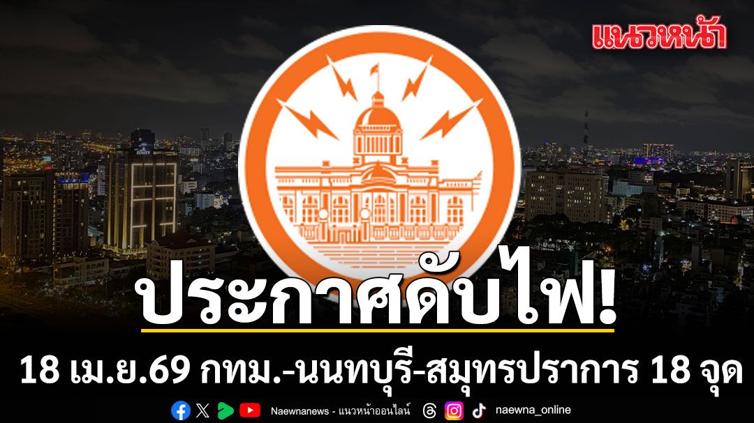 วันที่ 17 เมษายน 2569 การไฟฟ้านครหลวง (กฟน.) ประกาศเรื่อง มีความจำเป็นต้อง “ดับไฟ” ในพื้นที่กรุงเทพมหานคร นนทบุรี และ สมุทรปราการ ในวันเสาร์ที่ 18 เมษายน 2569 เพื่อพัฒนาหรือบำรุงรักษาระบบการจ่ายกระแสไฟฟ้าให้มีประสิทธิภาพยิ่งขึ้น