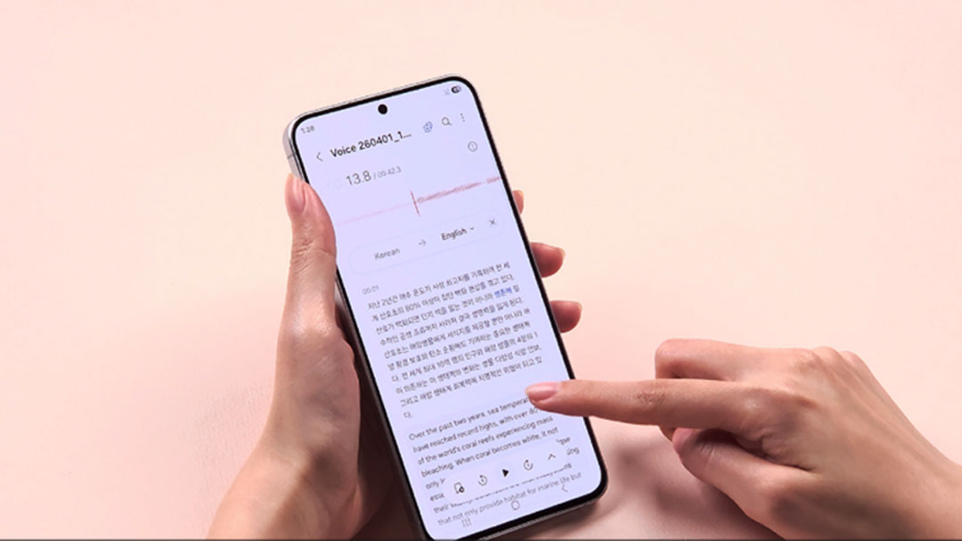 หนึ่งในฟีเจอร์ใหม่ที่โดดเด่น คือ Voice Transcription ซึ่งพร้อมใช้งานบน Galaxy A Series เป็นครั้งแรก โดยผู้ใช้งานสามารถบันทึกเสียงผ่านแอป Voice Recorder พร้อมแปลงเสียงพูดเป็นข้อความ และแปลภาษาได้หลากหลายภาษา2 ช่วยให้การทบทวนการประชุม การย้อนฟังบทเรียน หรือการจัดระเบียบข้อมูลจากการบันทึกสายสนทนา เป็นเรื่องสะดวกและมีประสิทธิภาพยิ่งขึ้น