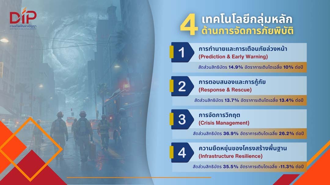 ‘กรมทรัพย์สินทางปัญญา’เปิดเทรนด์สิทธิบัตร‘เทคโนโลยีจัดการภัยพิบัติ’ ชี้โลกเร่งพัฒนา AI-ดิจิทัล รับมือวิกฤต ยกระดับสู่ระบบจัดการเชิงคาดการณ์