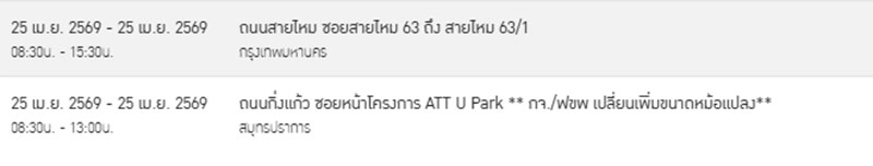 ถนนสายไหม ซอยสายไหม 63 ถึง สายไหม 63/1 เวลา 08:30น. - 15:30น.