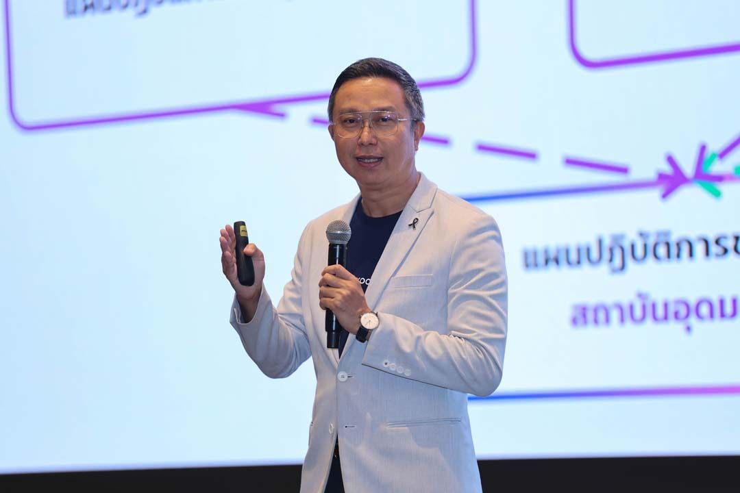 ในโอกาสนี้ ดร.สุรชัย ยังได้บรรยายหัวข้อ “แนวทางการพัฒนานโยบายโดยหลักการนโยบายนวัตกรรมที่มุ่งเน้นพันธกิจ (MOIP)” โดยเน้นการแปลงโจทย์ระดับประเทศให้เป็นภารกิจที่ชัดเจน เพื่อขับเคลื่อนการวิจัย นวัตกรรม และการศึกษาอย่างตรงเป้าหมาย ผ่านแนวคิด Portfolio of Innovation และการบูรณาการทรัพยากรข้ามสาขา เปลี่ยนจากการพัฒนาแบบรายสาขา (Sector-based) สู่การมุ่งผลลัพธ์เชิงภารกิจที่วัดผลได้ภายในกรอบเวลาที่ชัดเจน