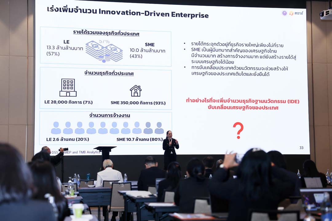 นอกจากนี้ ยังมีการผลักดันนโยบายส่งเสริมผู้ประกอบการนวัตกรรม (Innovation-driven Enterprise) ผ่านการปรับกฎหมาย การพัฒนาระบบนิเวศธุรกิจนวัตกรรม การสร้างแพลตฟอร์มขยายตลาด (E-Commercial and Innovation Platform: ECIP) การสนับสนุนการร่วมลงทุนผ่านกลไก University Holding Company (UHC) และนโยบาย Offset เพื่อยกระดับอุตสาหกรรมไทยสู่ห่วงโซ่อุปทานโลก