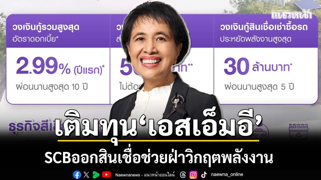 ธนาคารไทยพาณิชย์ ขานรับแนวทางธนาคารแห่งประเทศไทย (ธปท.) เสริมสภาพคล่องช่วยลูกค้าเอสเอ็มอีลดผลกระทบจากสถานการณ์ตะวันออกกลาง ออกสินเชื่อเพื่อความยั่งยืนของธุรกิจ (Sustainable Financing) วงเงินสูงสุด 50 ล้านบาท โดยไม่ต้องใช้หลักประกัน ผ่อนชำระนาน 10 ปี และสินเชื่อเช่าซื้อรถประหยัดพลังงานวงเงินสูงสุด 30 ล้านบาท ผ่อนชำระนาน 5 ปี ด้วยอัตราดอกเบี้ยพิเศษ 2.99% ในปีแรก หวังกระตุ้นให้ผู้ประกอบการเร่งเปลี่ยนโครงสร้างต้นทุนพลังงานเดิมสู่พลังงานสะอาด ยกระดับเป็นธุรกิจสีเขียว รับกับบริบทการแข่งขันของธุรกิจในอนาคต