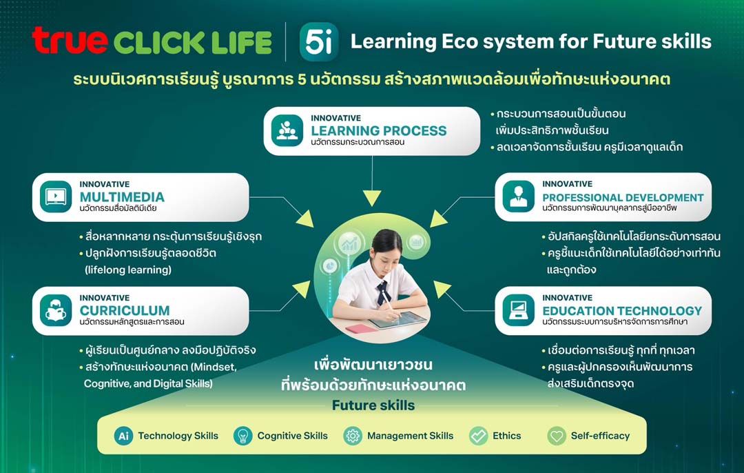 ทรู คลิกไลฟ์ ยังมุ่งยกระดับหลักสูตรสู่มาตรฐานสากล ผ่านการสร้างทักษะที่โลกอนาคตต้องการจริง ทั้งด้านเทคโนโลยี การคิดวิเคราะห์ ความคิดสร้างสรรค์ ภาษา และคุณธรรมจริยธรรม โดยเน้นการเรียนรู้ผ่านการลงมือทำ ควบคู่กับการพัฒนาครูและผู้บริหารให้ก้าวทันเทรนด์การศึกษา เทคโนโลยี และ AI อยู่เสมอ เพราะในโลกการศึกษายุคใหม่ โรงเรียนที่พร้อม คือโรงเรียนที่มี “ระบบนิเวศการเรียนรู้ครบวงจร” มีเทคโนโลยีที่ช่วยเพิ่มประสิทธิภาพการทำงาน และมีความสามารถในการสร้างประสบการณ์การเรียนรู้ที่ตอบโจทย์ทักษะแห่งอนาคตได้อย่างแท้จริงโรงเรียนเอกชนที่สนใจเข้าร่วมหลักสูตรทรู คลิกไลฟ์ สามารถติดต่อได้ที่ 08-9116-0239 หรือดูรายละเอียดเพิ่มเติมได้ที่ www.trueclicklife.com