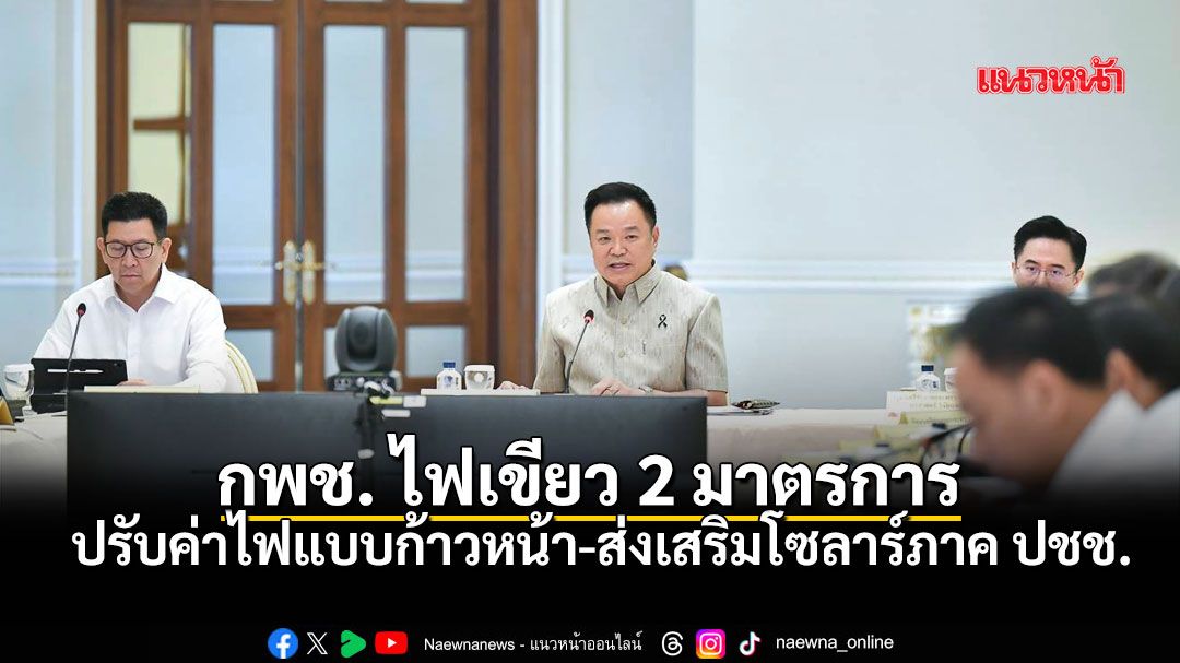 -มอบหมาย กกพ. ร่วมกับ กฟน. และ กฟภ. ดำเนินการปรับปรุงการออกแบบอัตราค่าไฟฟ้าแบบก้าวหน้า (Progressive Rate) ให้เป็นไปตามนโยบายและกฎหมายว่าด้วยการประกอบกิจการพลังงาน ให้แล้วเสร็จภายในเดือนมิถุนายน 2569 ตามมติ ครม. เมื่อวันที่ 28 เมษายน 2569 และให้ กกพ. กำกับดูแลการชดเชยและอุดหนุนรายได้ระหว่างผู้รับใบอนุญาตให้เป็นธรรมโดยคำนึงถึงสถานะทางการเงินของแต่ละราย