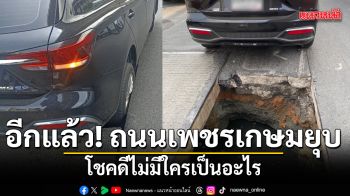 อีกแล้ว! ถนนเพชรเกษมยุบ เก๋งตกหลุมล้อแตก โชคดีไม่มีใครเป็นอะไร จนท.เร่งซ่อม