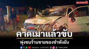 กระบะพุ่งชนร้านค้าขายของชำพังยับ 4 พ่อลูกรอดหวุดหวิด คาดเมาแล้วขับ