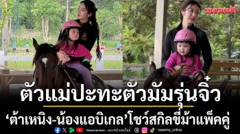 ตัวแม่ปะทะตัวมัมรุ่นจิ๋ว 'ต้าเหนิง' แท็กทีม 'น้องแอบิเกล'โชว์สกิลขี่ม้าแพ็คคู่!