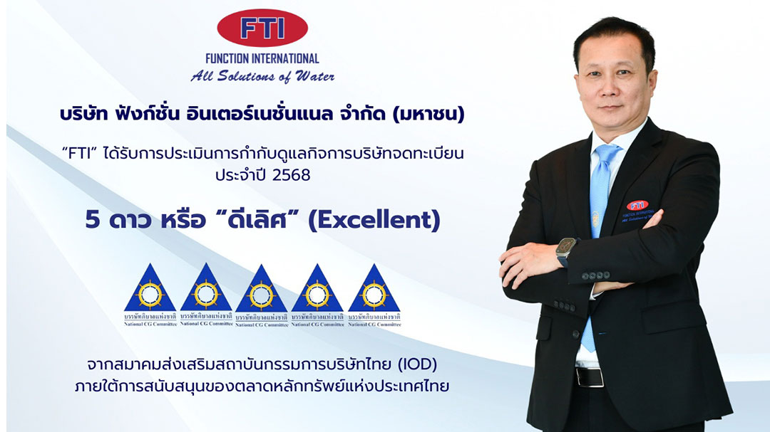 ####ขอปรบมือให้กับบริษัท ฟังก์ชั่น อินเตอร์เนชั่นแนลหรือ FTI ภายใต้การนำทัพของ”ดร. วิกร ภูวพัชร์” ซีอีโอคนเก่งที่ไม่เคยหยุดพัฒนา ล่าสุดคว้า คะแนนประเมินการกำกับดูแลกิจการ(CG Rating) ระดับ 5 ดาว “ดีเลิศ” (Excellent CG Scoring) ประจำปี 2568 จากสมาคมส่งเสริมสถาบันกรรมการบริษัทไทย(IOD) ภายใต้การสนับสนุนของตลาดหลักทรัพย์แห่งประเทศไทยถือเป็นอีกหนึ่ง“รางวัลเชิดชูเกียรติ”ที่ตอกย้ำความเป็นผู้นำองค์กรธรรมาภิบาลครบสูตรทั้งเศรษฐกิจ สังคม และสิ่งแวดล้อม (ESG) พร้อมสร้างความเชื่อมั่นให้กับผู้ถือหุ้นและนักลงทุนในทุกมิติผลงานครั้งนี้ไม่เพียงสะท้อนถึงความโปร่งใสและความรับผิดชอบต่อสังคม แต่ยังตอกย้ำวิสัยทัศน์ของFTI ที่มุ่งสู่การเติบโตอย่างยั่งยืนในระยะยาว####ตลาดหลักทรัพย์แห่งประเทศไทย เชิญชวนคนไทยดูแลสุขภาพการเงินให้แข็งแรงและมั่นคงยิ่งขึ้น ด้วย “Happy Money App” แอปพลิเคชันบริหารจัดการเงินส่วนบุคคล ที่ช่วยวิเคราะห์สถานะทางการเงินรอบด้าน ทั้งรายรับ-รายจ่าย ทรัพย์สิน-หนี้สิน เพื่อให้ผู้ใช้งานรู้จุดแข็งและจุดอ่อนทางการเงิน พร้อมรับคำแนะนำการปรับพฤติกรรมเพื่อให้การวางแผนการเงินสำเร็จได้ง่ายขึ้น "Happy Money App" พัฒนาโดยตลาดหลักทรัพย์ฯโดดเด่นด้วยรูปแบบที่ทันสมัย ปลอดภัย ดาวน์โหลด “Happy Money App” ได้ฟรี ไม่มีค่าใช้จ่ายใดๆ ทั้งบนระบบ iOS และ Android โดยค้นหาคำว่าSET Happy Money #####