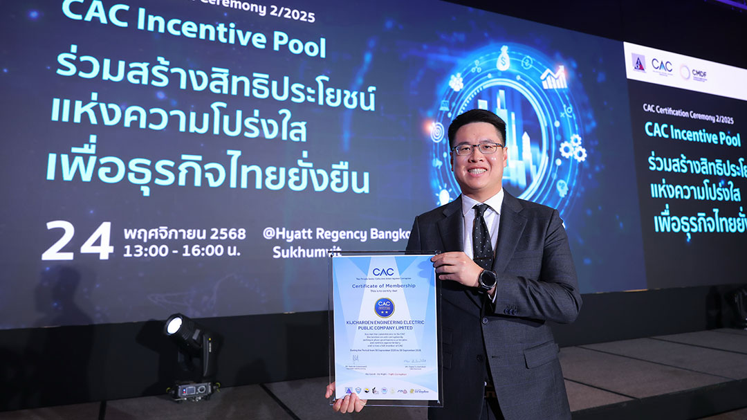#### บริษัทกิจเจริญ เอ็นจิเนียริ่ง อีเลคทริค หรือ KJL ได้รับใบรับรองการเป็นสมาชิกของ "แนวร่วมปฏิบัติของภาคเอกชนไทยในการต่อต้านการทุจริต" (Private Sector Collective Action Against Corruption: CAC) เป็นที่เรียบร้อยในปีแรกการได้รับใบรับรอง CAC ถือเป็นเครื่องพิสูจน์ถึงความมุ่งมั่นของ KJL ในการดำเนินธุรกิจภายใต้หลักการกำกับดูแลกิจการที่ดี (Good Corporate Governance) โดยให้ความสำคัญกับความโปร่งใส ความซื่อสัตย์สุจริต และการมีส่วนร่วมในการต่อต้านการทุจริตคอร์รัปชันในทุกรูปแบบ ซึ่งเป็นองค์ประกอบสำคัญในการสร้างความเชื่อมั่นให้กับผู้มีส่วนได้ส่วนเสีย ทั้งนักลงทุน คู่ค้า และสังคมโดยรวม”เกษมสันต์ สุจิวโรดม” ประธานเจ้าหน้าที่บริหารย้ำว่า “การที่ KJL ได้รับใบรับรอง CAC ในปีแรกที่เข้าร่วมโครงการ ถือเป็นความภาคภูมิใจ และสะท้อนถึงการยึดมั่นในนโยบายการต่อต้านคอร์รัปชันอย่างเคร่งครัดของบริษัทฯ เราเชื่อว่าความโปร่งใสและการดำเนินธุรกิจอย่างมีจริยธรรมเป็นรากฐานสำคัญของการเติบโตอย่างยั่งยืน การได้รับใบรับรองนี้จะยิ่งเสริมสร้างภาพลักษณ์ที่ดี และเพิ่มความมั่นใจให้กับทุกฝ่ายที่เกี่ยวข้องกับ KJL” ####