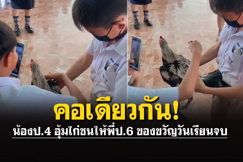 (คลิป)ของขวัญวันปัจฉิม! จากใจน้องป.4 อุ้มไก่ชน ให้พี่ป.6วันเรียนจบ